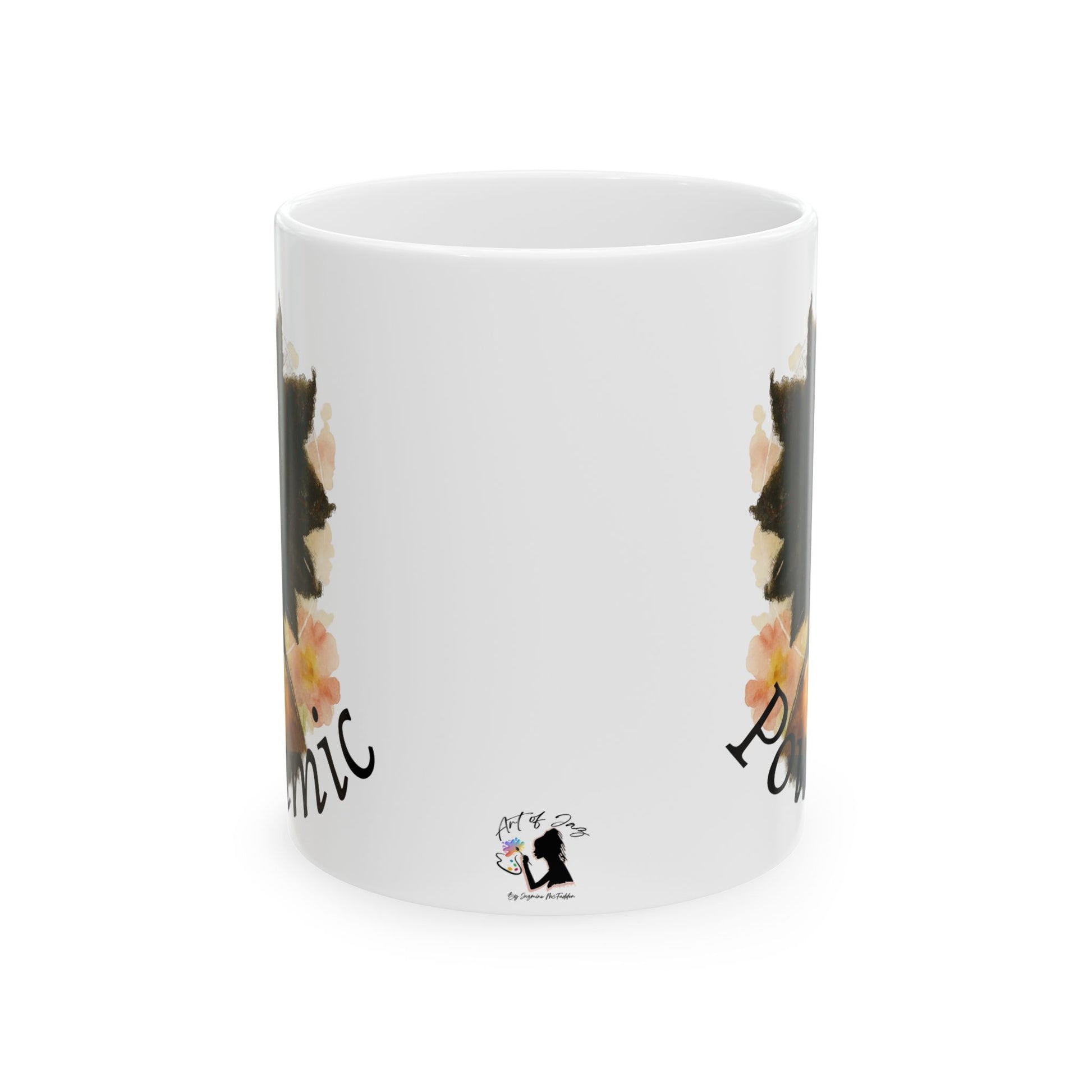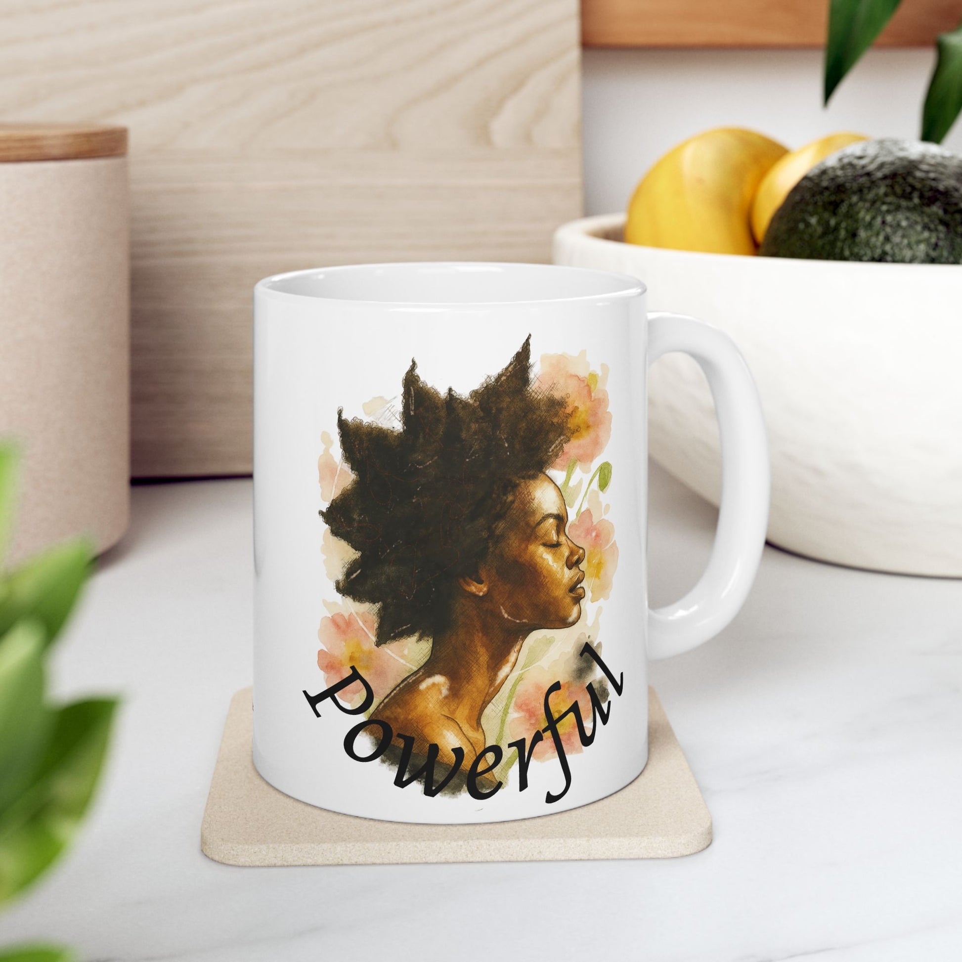 Powerful and Dynamic Black Girl Portrait Ceramic Mug | Floral Accent | Coffee Mug